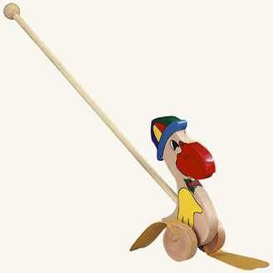 Dřevěná tahací hračka: Pelikán na tyči s čepicí