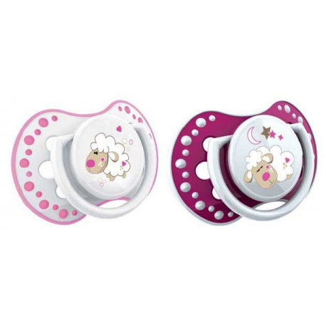 LOVI Dudlík 6-18m silikonový dynamický NIGHT & DAY 2ks ovečka