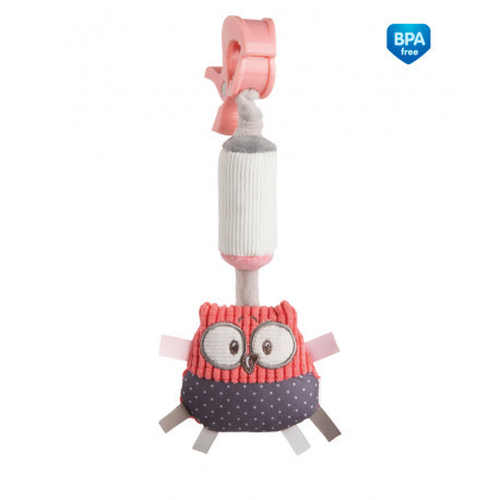 Canpol babies Plyšová hračka se zvonečkem a klipem PASTEL FRIENDS červená sova