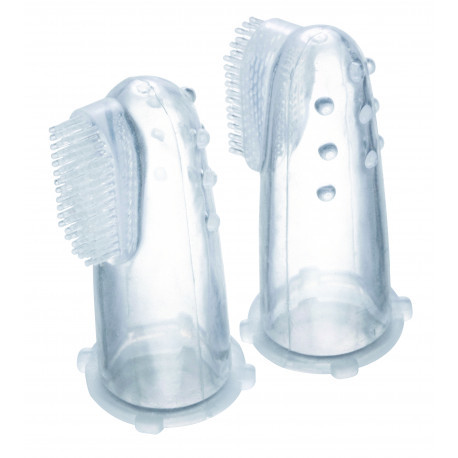 Szczoteczkę łatwo nasunąć na palec wskazujący i za pomocą delikatnych ruchów oczyścić jamę ustną dziecka. W ten sposób wspierasz nie tylko higienę, lecz także przyjemne i łagodne podejście dziecka do codziennego mycia ząbków.