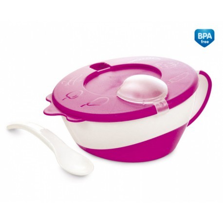 Lehká, barevná, praktická miska s lžičkou ve víčku je ideální jídelní pomůcka při každodenních procházkách nebo cestování. Lžička je hygienicky uzavřena v průhledném víčku. Protiskluzové dno zabraňuje klouzání misky po desce stolu. Díky pogumovanému ergonomickému oušku se miska dobře drží při...