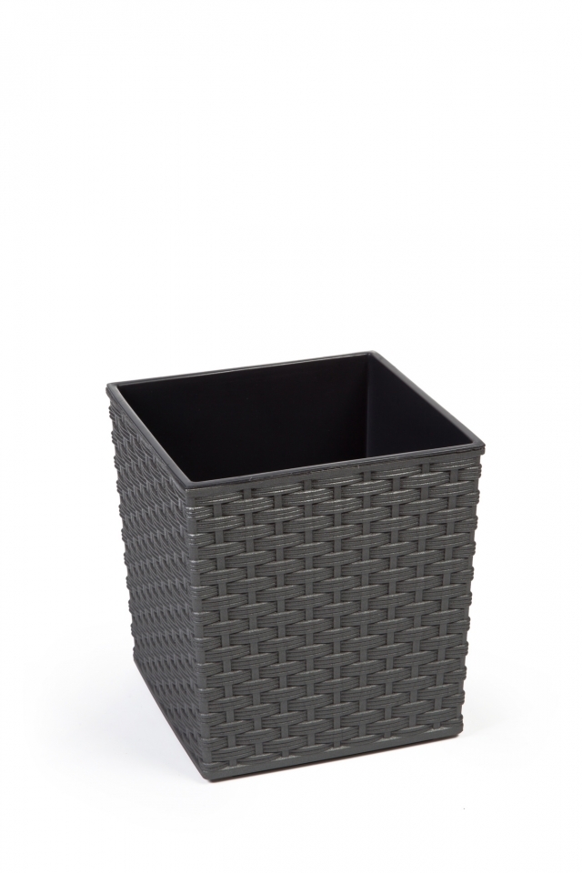 Čtvercový nízký plastový květináč Juka ratan s vyjímatelnou plastovou vložkou černé barvy. Květináč je na povrchu matný, vybírat můžete z různých barev a velikostí. Do plastové vložky se rostliny sadí a tato vložka se vkládá do vnějšího dekorativního květináče. Možnost použití v interiéru, ale...