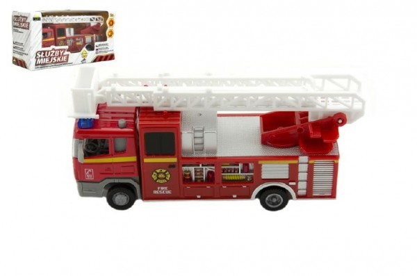 Auto hasiči městské služby plast 17cm na baterie se zvukem se světlem v krabici 19x10x7cm