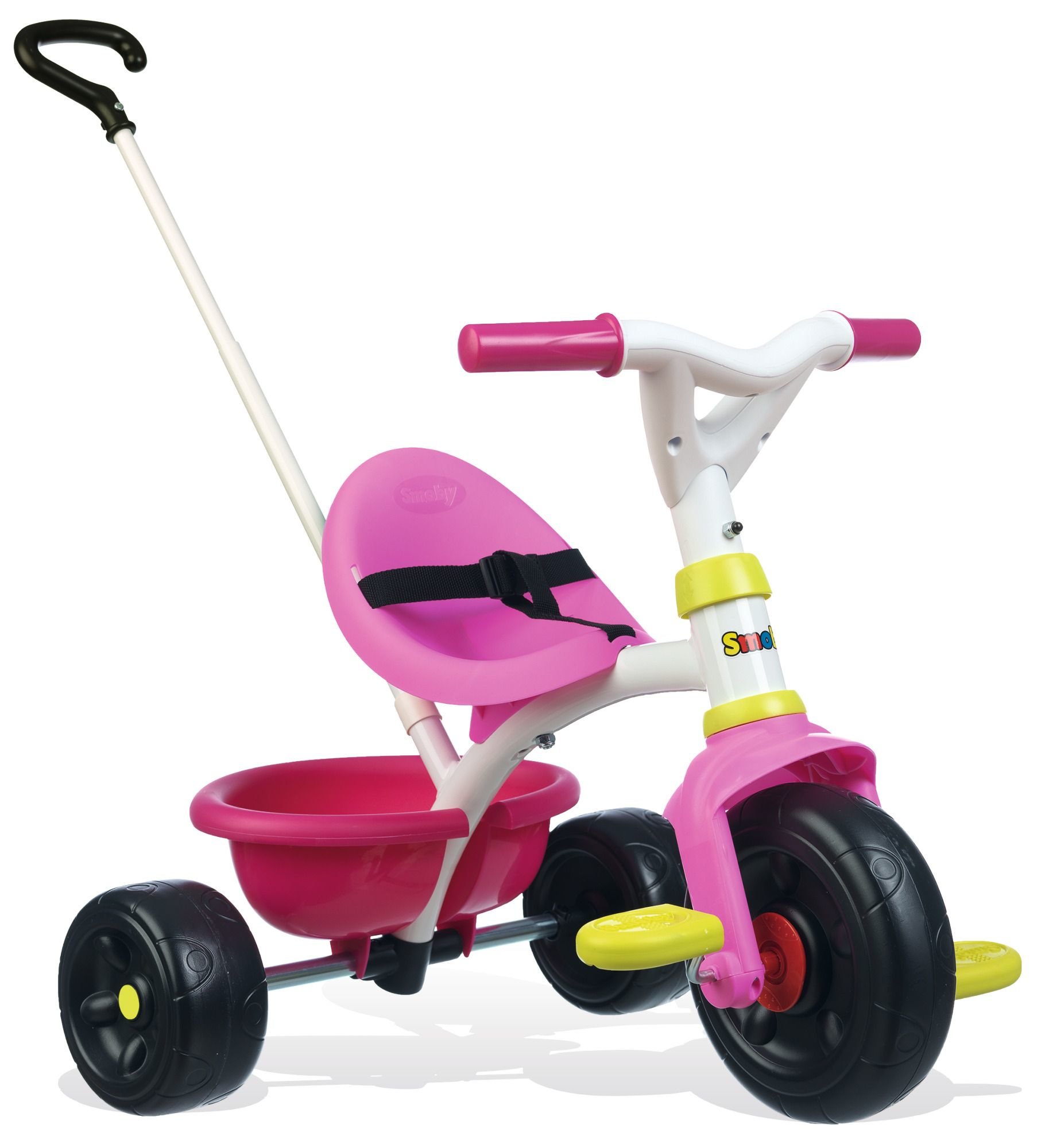 Šlapací tříkolka v růžovém provedení má kovový rám, odnímatelnou a nastavitelnou vodící tyč, protiskluzové pedály s možností zablokování šlapání, nastavitelné ergonomické sedadlo na 2 pozice, bezpečnostní pás, výklopný plastový košík. Rozměry: 68 x 52 x 52 cm. Hmotnost: 3,6 kg. przeczytaj całość