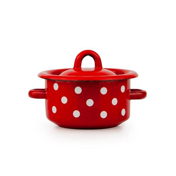 Emaliowany garnek z pokrywką 0,4 l, dekor w kropki przeczytaj całość