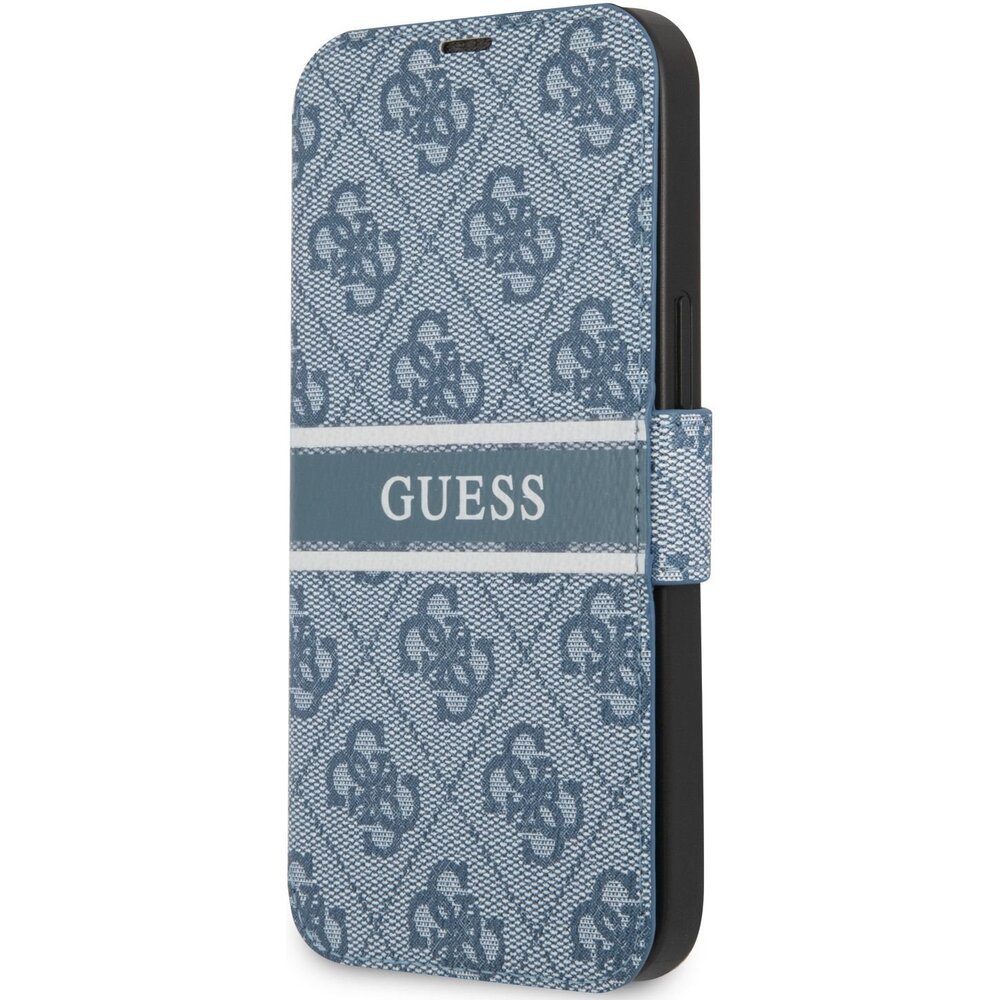 Guess PU 4G Printed Stripe Book Case iPhone 13 Mini modrý