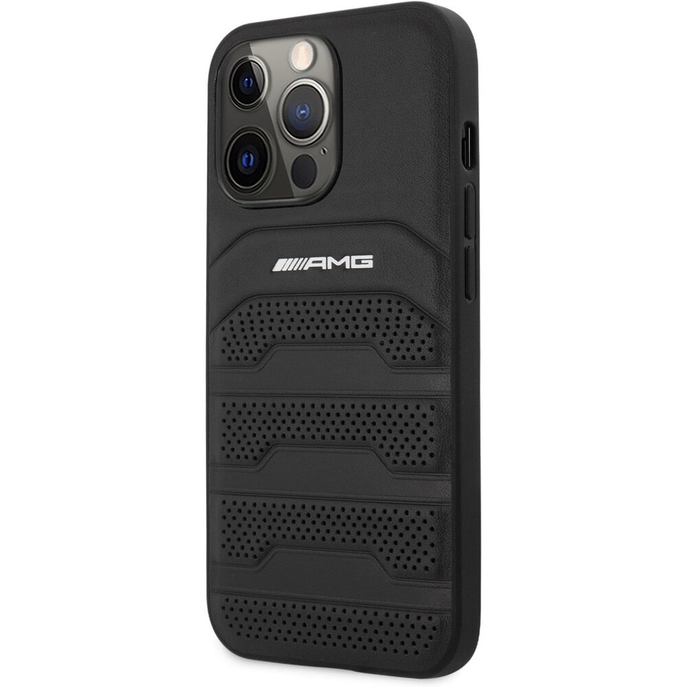 AMG Genuine Leather Perforated Kožený Kryt iPhone 13 Pro černý