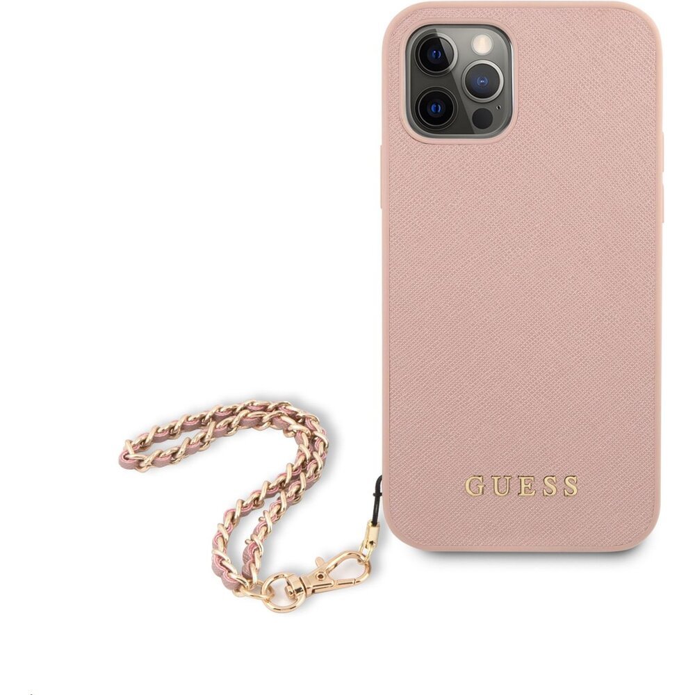 Guess PU Saffiano Gold Chain kryt iPhone 12/12 Pro růžový