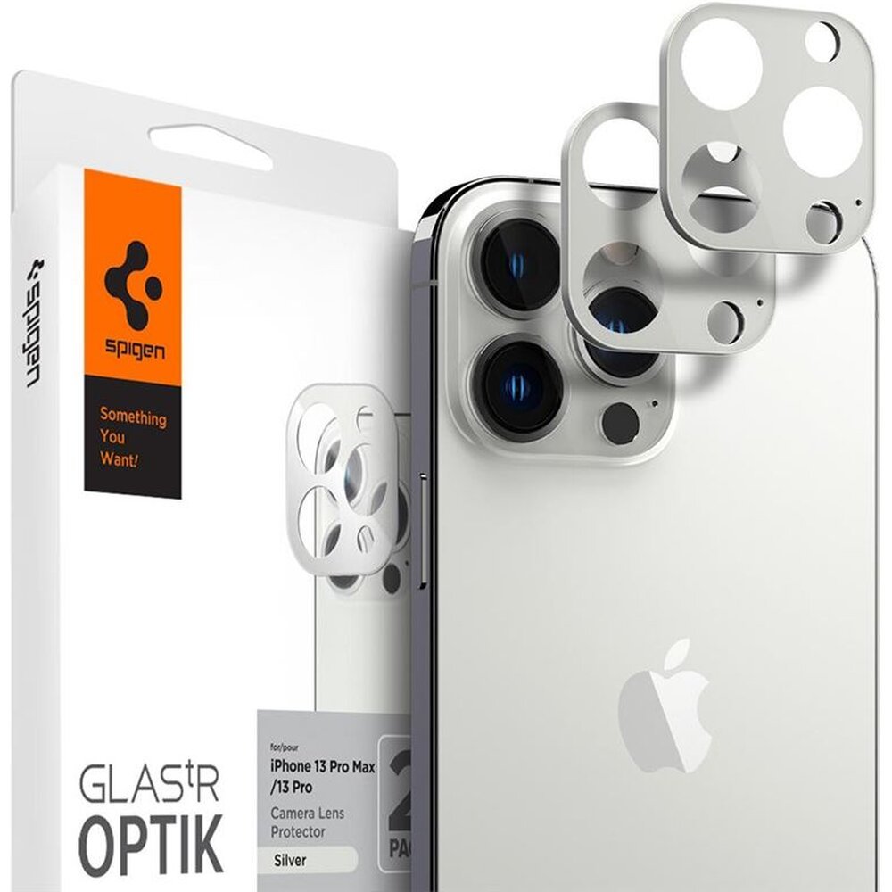 Spigen tR Optik 2 Pack tvrzené sklo na fotoaparát iPhone 13 Pro/Max stříbrné