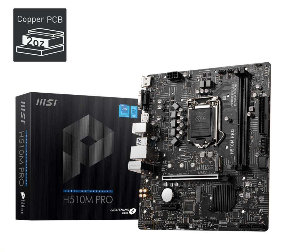 MSI MB Sc LGA1200 H510M PRO, Intel H510, 2xDDR4, 1xDP, 1xHDMI, 1xVGA, mATX
