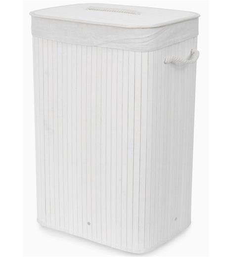 Koš na prádlo Compactor bambusový s víkem Bamboo - obdélníkový, bílý, 40 x 30 x v.60 cm