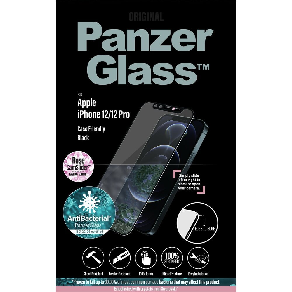 PanzerGlass Edge-to-Edge Antibacterial Apple iPhone 12/12 Pro s růžovým Swarowski CamSlider
