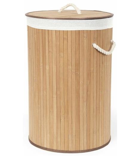 Koš na prádlo Compactor bambusový s víkem Bamboo - kulatý, přírodní, 40 x v.60 cm
