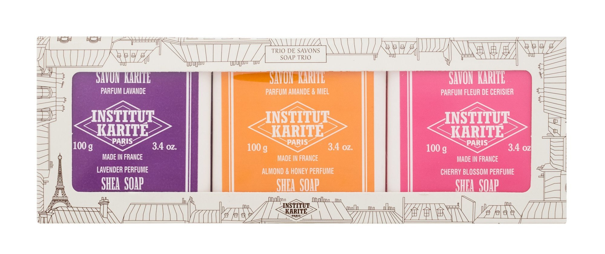 Institut Karité Shea Soap tuhé mýdlo Shea Soap Lavender 100 g + tuhé mýdlo Shea Soap Almond & Honey 100 g + tuhé mýdlo Shea Soap Cherry Blossom 100 g