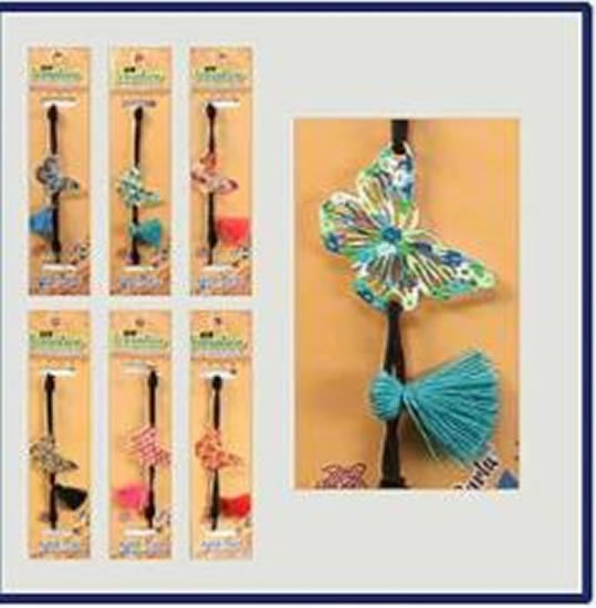 Náramek na ruku barevný motýl na černé šňůrce