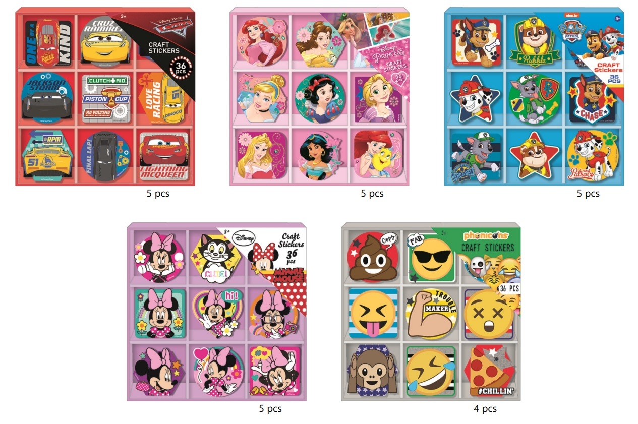 Samolepky v krabičce 36 kusů 10,5x10,5x1,5 cm 5 druhů (The Cars, Princezny, Paw Patrol, Minnie a Emojis). Nelze zvolit druh, dodáváme dle skladové dostupnosti. przeczytaj całość