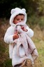 Deka s kožíškem do kočárku a do postýlky oboustranná jedna strana má robustní pletený vzor druhá strana má měkký kožíšek materiál pletené části: 100% akryl materiál kožíšku: 100% polyester rozměr: 100 x 80 cm údržba: praní na 40 °C przeczytaj całość