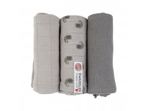 Lodger Swaddler - sada tří kusů mnoho možností použití (osuška, plenka, muchláček, ochrana před slunečními paprsky) vyroben z tenké bavlněné pleteniny měkký a příjemný na dotek extra savý a prodyšný materiál: hydrofilní bavlněná pletenina rozměry: 70 x 70 cm przeczytaj całość
