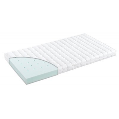 bodově elastická pěna vyráběná za studena se svislými vzduchovými kanálkyPOTAHY MATRACÍ elastická bavlněná látka s polyesterem, prošitá rounem z dutého vláknaJÁDRO MATRACE bodově elastická pěna vyráběná za studena se svislými vzduchovými kanálkyPOPIS MATERIÁLU Směs bavlny a polyesteru 44 %...