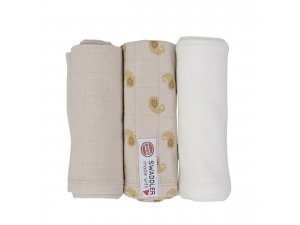 Lodger Swaddler - sada tří kusů mnoho možností použití (osuška, plenka, muchláček, ochrana před slunečními paprsky) vyroben z tenké bavlněné pleteniny měkký a příjemný na dotek extra savý a prodyšný materiál: hydrofilní bavlněná pletenina rozměry: 70 x 70 cm przeczytaj całość