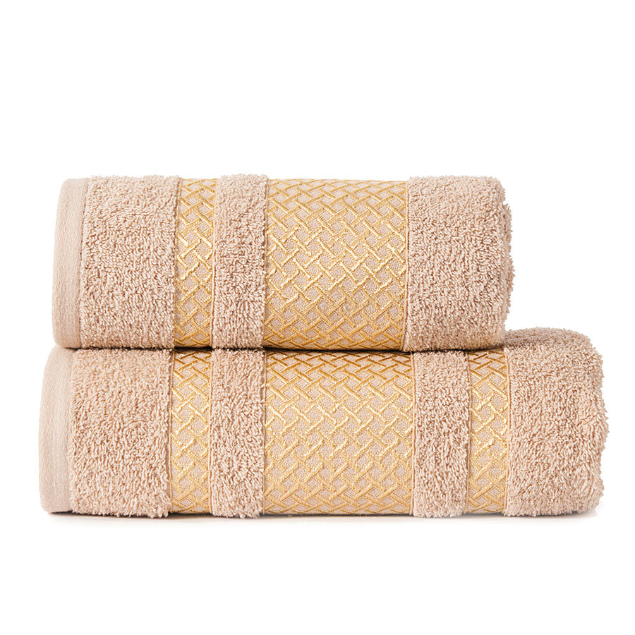 Bavlněný froté ručník s bordurou LIONEL 50x90 cm, béžová/zlatá, 450 gr Mybesthome