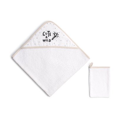 FUNNABABY Set Osuška s kapucí + žínka Cute & Wild Beige