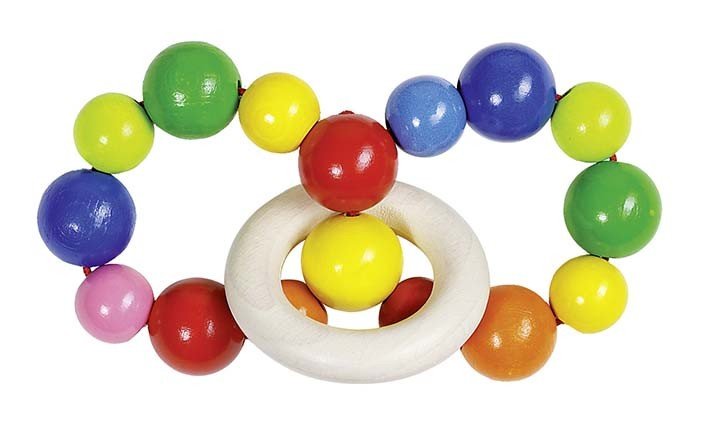 Barevné dřevěné perličky spojené k sobě na elastické pásce s dřevěným kroužkem vydávající klapající zvuk. Chrastítka Heimess jsou ošetřena jemnými a zářivými barvami na vodní bázi. Lazurové barvy nechávají viditelnou jemnou strukturu letokruhů přírodního dřeva. Chrastítka Heimess podporují...
