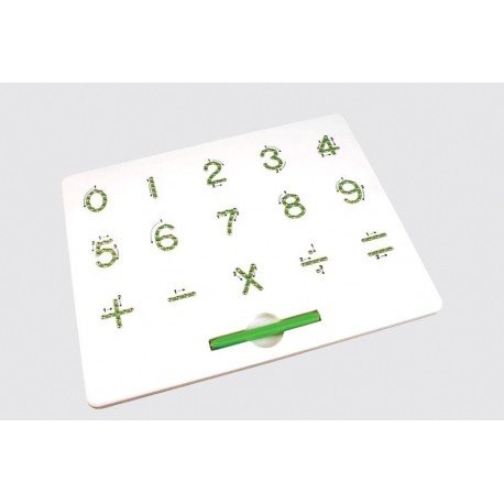 Magnetická tabulka Magpad pro nácvik správného psaní číslic složená z magnetických kuliček a pera. Dítě prostřednictvím nakreslených šipek obkresluje magnetickým perem linii číslice správným směrem. Díky působící síle mezi magnety dítě cítí a slyší, jak vyskakují magnetické kuličky směrem k...