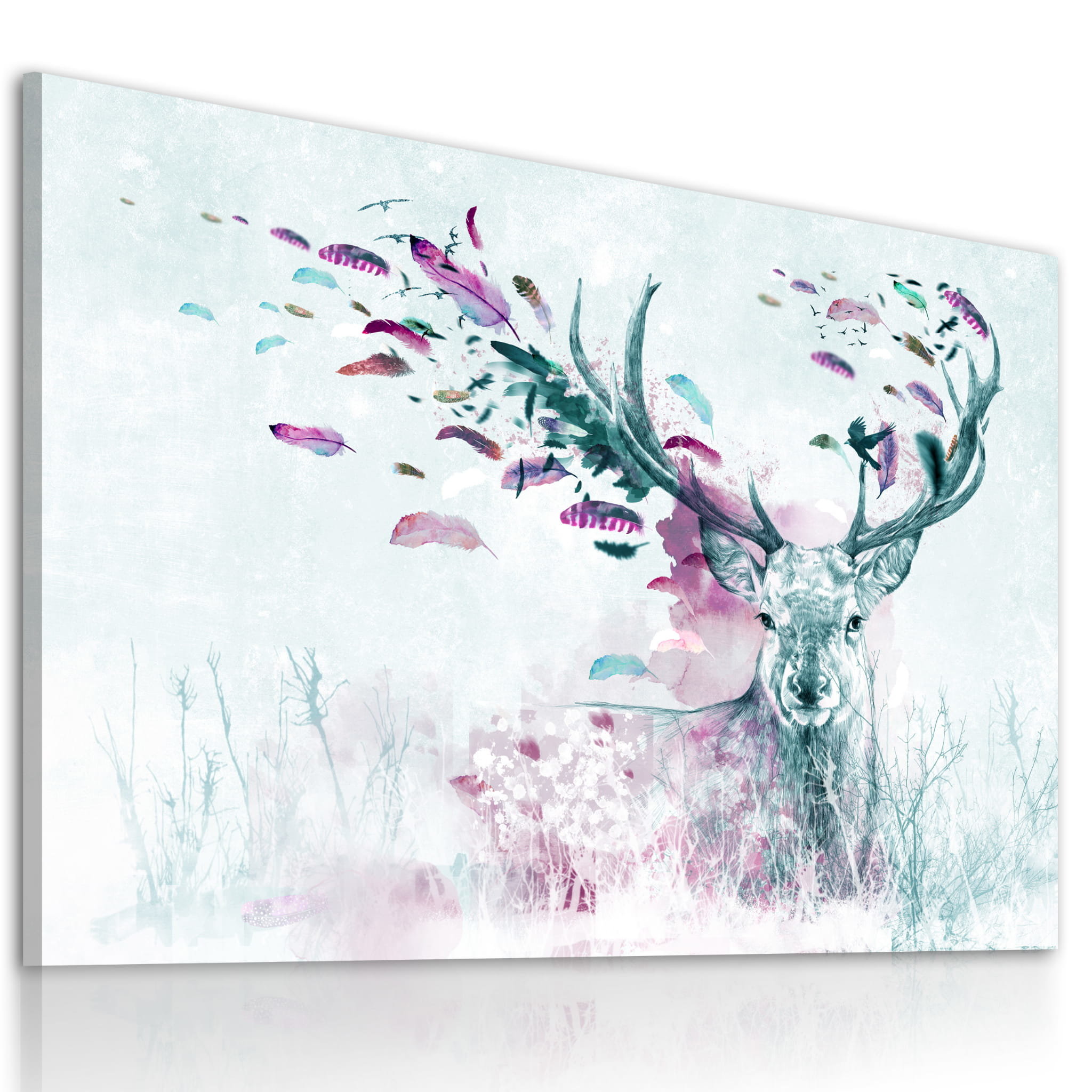 Obraz na plátně DEER WITH FEATHERS - PINK 120x80 cm Ludesign