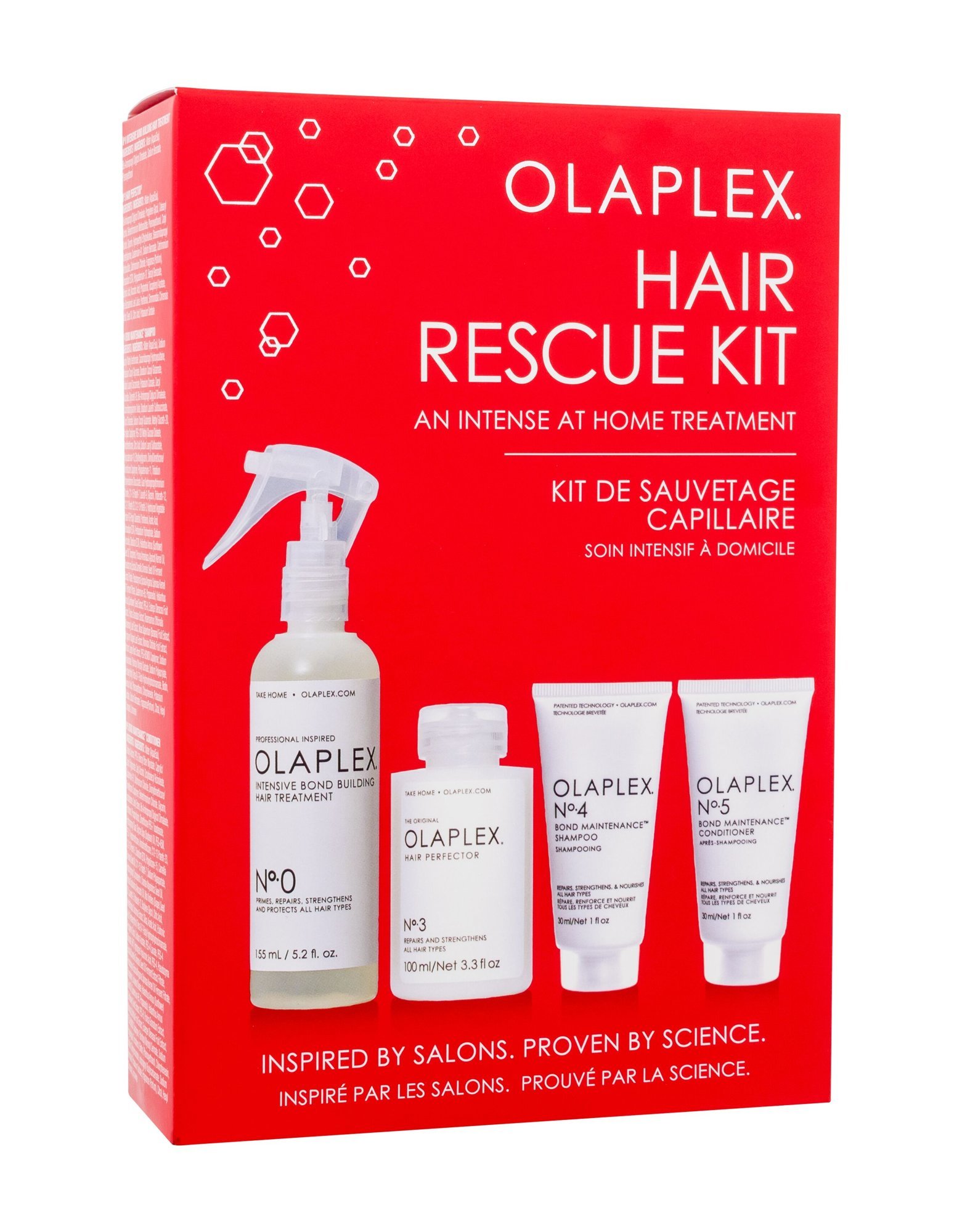 Olaplex Hair Rescue Kit sérum na vlasy Intensive Bond Building Hair Treatment No.0 155 ml + balzám na vlasy Hair Perfector No.3 100 ml + šampon Bond Maintenance Shampoo No. 4 30 ml + kondicionér Bond Maintenance Conditioner No. 5 30 ml