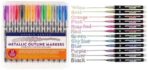 Markery konturowe Outline firmy Peter Pauper Press. Zestaw srebrnych markerów metalicznych z konturem w jednym z 12 różnych kolorów - idealne do zdobienia, pisania, kaligrafii i rękodzieła, wszędzie tam, gdzie powierzchnia jest porowata. Grubość pisania to 2 mm. Całość zamykana w praktyczne...