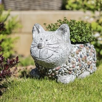 Dekorativní kočka - květináč.Rozměry : 35 x 26 cm, výška 25 cm.Barva : šedá s barevnými kamínky.Není mrazuvzdorné.Materiál : magnesium. przeczytaj całość