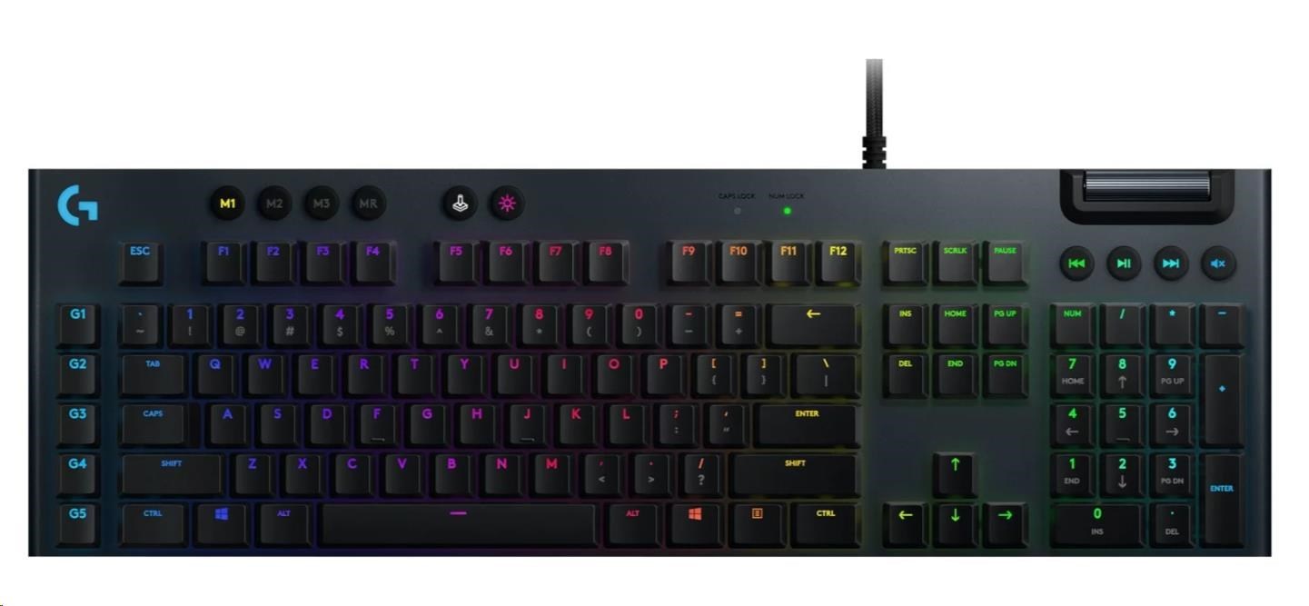 Mechanická herní klávesnice G815NOVÝ ROZMĚRPokročilé herní technologie v sofistikovaném, ultratenkém provedení. Plně přizpůsobitelná, vybavená podsvícením LIGHTSYNC RGB a speciálními klávesami G-key. Navržená pro vysokovýkonnostní hraní s nízkoprofilovými mechanickými spínači GL v klikací,...