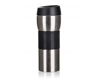 Cestovní hrnek AKCENT dvoustěnný, je vhodný na teplé i studené nápoje. Vnější část z nerezi 201 v kombinaci s černým silikonovým rukávem a vnitřní část z nerezi 304. Využitelný objem je 420 ml. przeczytaj całość