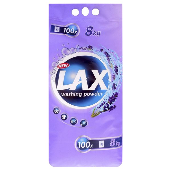 Lax prací prášek s extra vůní Levandule - 8Kg na 100 pracích dávek cenově výhodný prací prášek s velice příjemnou vůní levandule v XXL balení. Prací prášek LAX si poradí se skvrnami a s běžným znečištěním i pracovních oděvů. Prací prášek Lax Universal Levandule je ideální na praní bílého a...