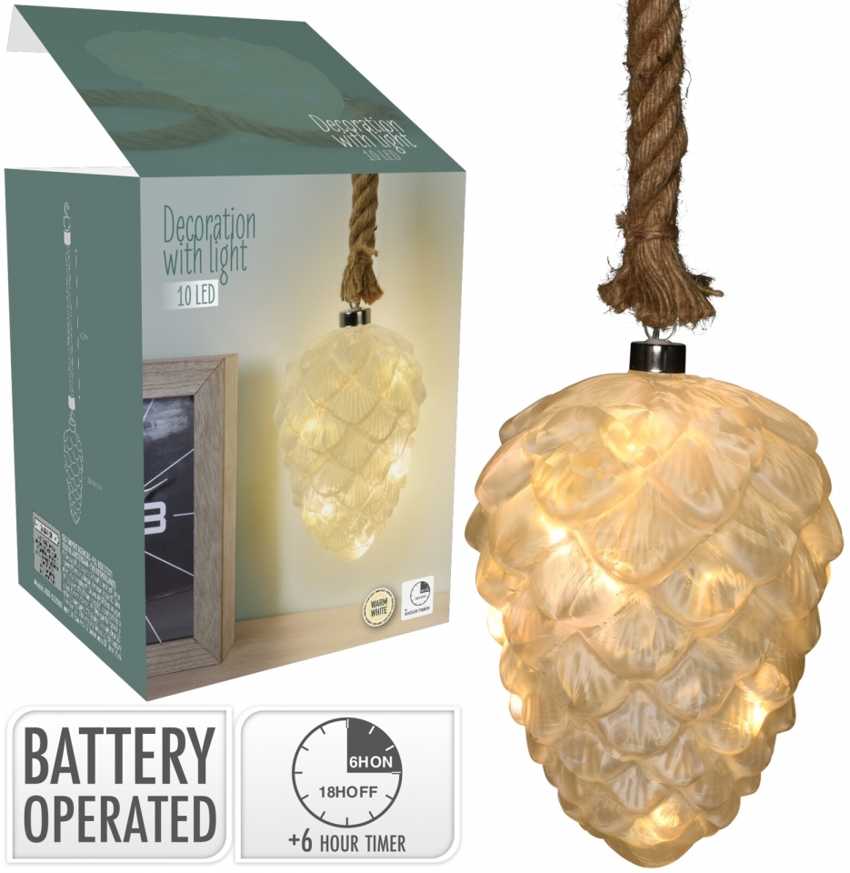 Dekorativní skleněná LED šiška zavěšená na laně. Šišku můžete zavěsit kam se vám zlíbí, nemá žádný přívodový kabel s adaptérem na baterie. V šišce je 10 LED diod s funkcí časovače (6 hodin svítí a 18 hodin nesvítí). Napájení na 2x AA baterie (nejsou součástí výrobku). Pouze pro vnitřní... przeczytaj całość