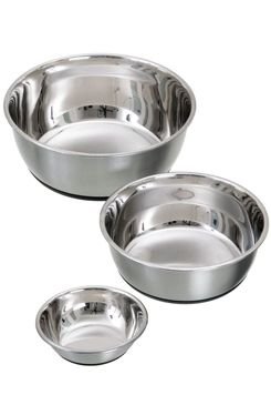 Miska z extra silné nerezové oceli má široké gumové hrany, které jsou pevně připevněné k ocelové misce. Díky tomu je silně protiskluzová. Také tvar misky zaručuje stabilitu. Nerezová ocel je hygienická a snadno se čistí. Lze mýt v myčce na nádobí.Objem: 950 ml przeczytaj całość