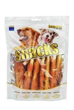 Měkká, přírodní masová pochoutka pro psy.Tyčka z hovězí kůže obtočená plátkem lahodného kuřecího masa.Slouží jako odměna při hře, výcviku nebo jako doplněk stravy při cestách.Složení:kuřecí maso, hovězí kůže, glycerin, sorbitol, cukrDeklarované jakostní znaky:hrubý protein 60%hrubá vláknina...