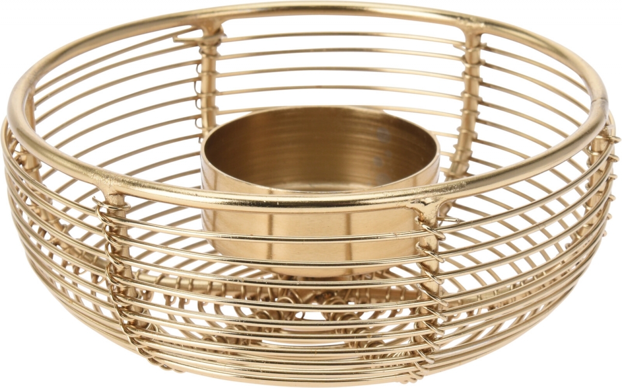 Kulatý drátěný svícen na čajovou svíčku. Svícen je kovový, zlatý a bude skvělým doplňkem do bytu.Materiál: kovRozměry:výška 4 cmprůměr 10,5 cmhmotnost 110 g przeczytaj całość