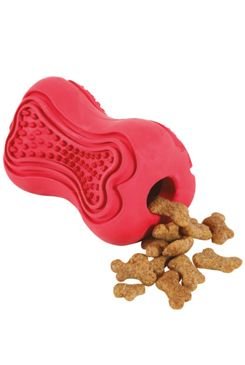 Gumová kost na pamlsky, vhodná i k samostatné hře.  Pamlsky nebo granulky ukryté v kosti budou Vašeho psa opravdu zajímat a zaměstnají ho na delší dobu. Díky této jedinečné kombinaci se tato gumová kost brzy stane nejoblíbenejší hračkou Vašeho psa.Gumové výstupky masírují dásně a podporují tak... przeczytaj całość