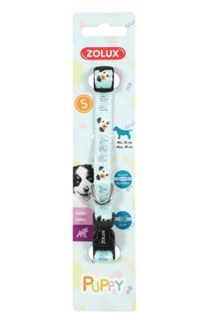 Nastavitelný textilní obojek pro štěňata v jemných pastelových barvách s nápisem PUPPY a obrázkem.Obvod krku 25-39cm. przeczytaj całość