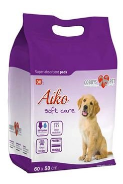 AIKO Soft Care - higieniczny podkład dla szczeniąt, starszych psów cierpiących na nietrzymanie moczu lub dla psów w rekonwalescencji. Super chłonne właściwości i łatwe użycie 5-warstwowego podkładu. Brak kapania - brak przecieków - chroni Twoje podłogi - neutralizacja zapachów - szybkie schnięcie. Używaj strony chłonnej podkładu jako wierzchniej. Nie pozwalaj psu gryźć, drzeć ani jeść podkładu. Aby zapobiec ryzyku uduszenia, przechowuj towar poza zasięgiem dzieci!