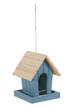 Závěsné dřevěné krmítko pro venkovní ptáky.