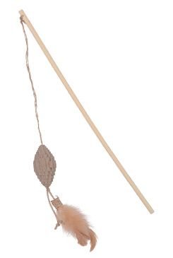 Bambusowa wędka z kartonową piłeczką i piórkiem - zabawka dla kotów