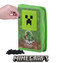 Zielone etui szkolne z motywem gry komputerowej Minecraft.