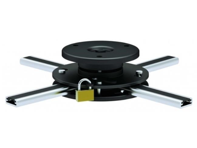 Stropní držák na dataprojektory - vzdálenost od stropu 6,2cm, přístroj lze otočit o 360° a naklonit +/-15°, maximální zatížení 20kg, možnost uzamčení proti odcizení, černý / stříbrný. Univerzální systém uchycení dataprojektorů (rozsah 16-33 cm). przeczytaj całość