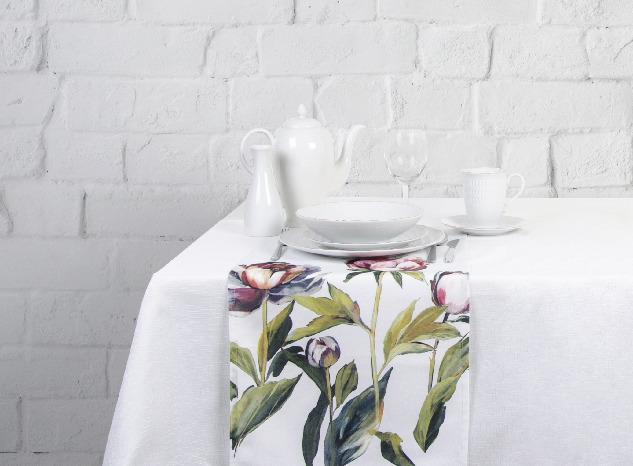 Ubrus - běhoun na stůl FLORELLO 35x180 cm, bílá, ESSEX