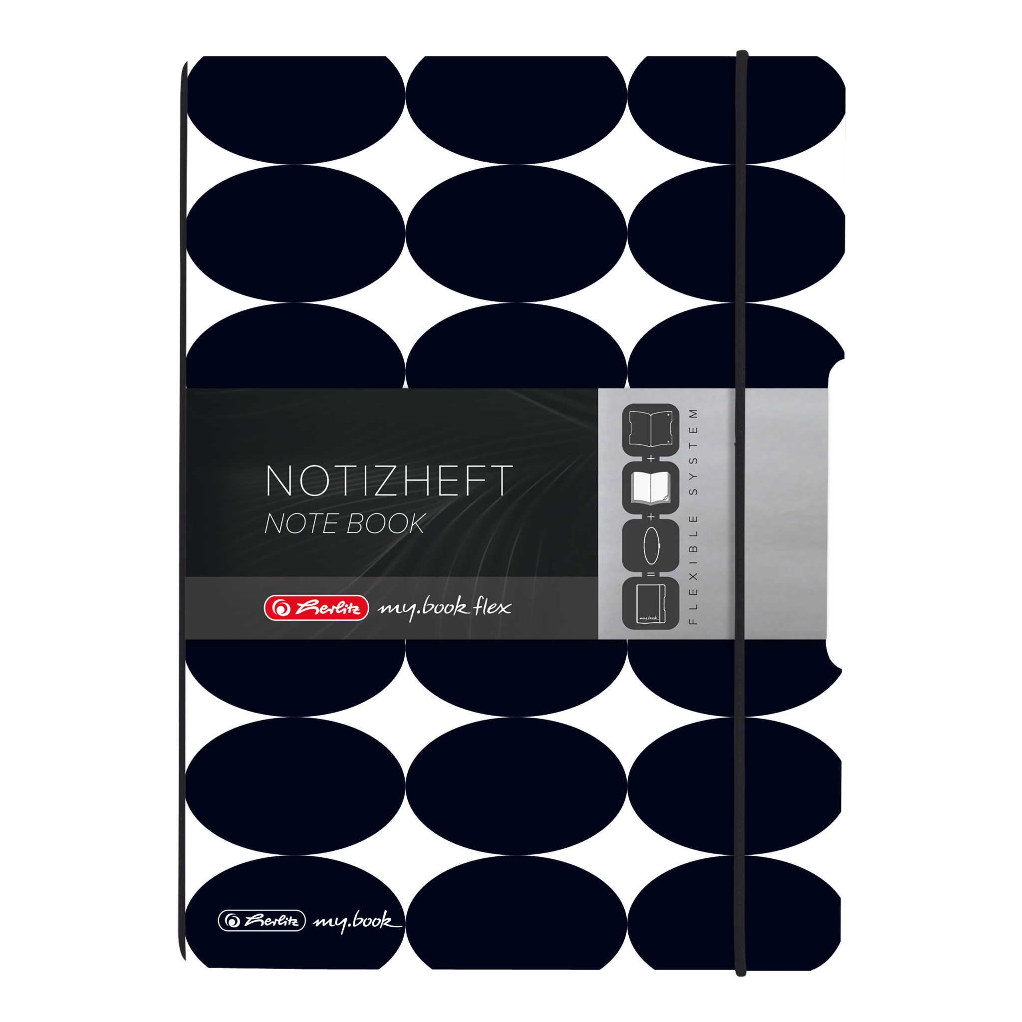 bezdřevý papír, 80 gsm, 40 tečkovaných listů, děrovaný, mikroperforace, vyměnitelný kryt, zaoblené hrany, elastické zapínání, motiv Just Black, przeczytaj całość