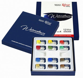 Sada akvarelových barev Rosa 12ks v papírovém obalu