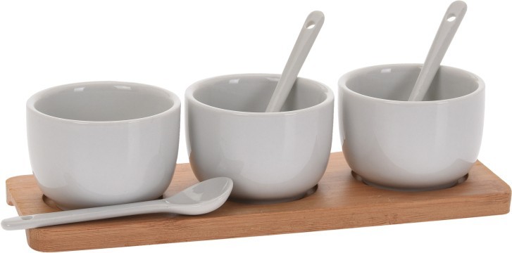 EXCELLENT Servírovací misky se lžičkami porcelán / bambus KO-795880010